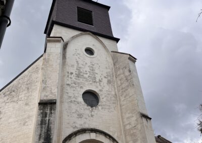 L’édifice actuel a subi de nombreux remaniements. En 1771, le chœur est inversé à l’ouest tandis que le portail est percé dans le chevet d’origine afin de permettre l’accès direct depuis la rue des Préaux. Transformée en magasin à poudre durant la Révolution, elle est finalement rendue au culte en 1854 et une flèche ajoutée. L’année 2010, voit l’achèvement de la restauration intégrale de l’édifice.